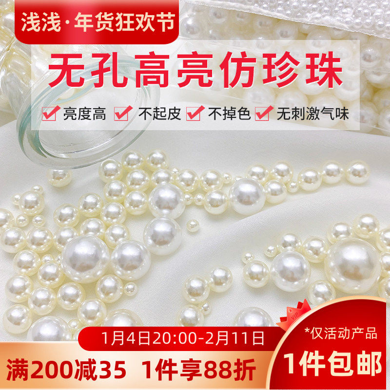 无孔高亮ABS仿珍珠米白纯白色散珠子diy手机壳粘贴化妆刷填充摆件