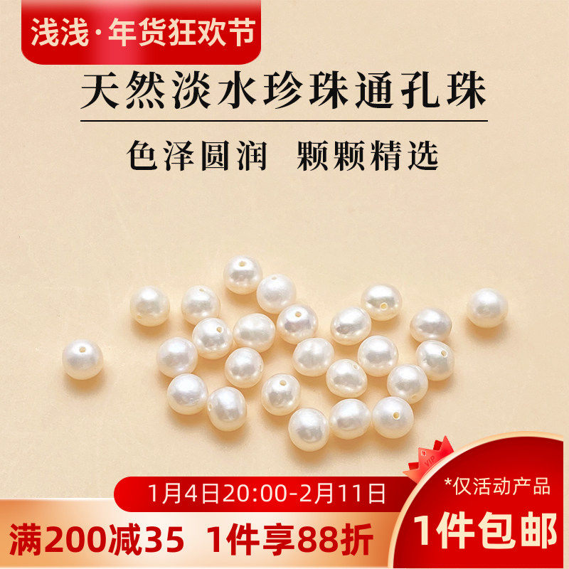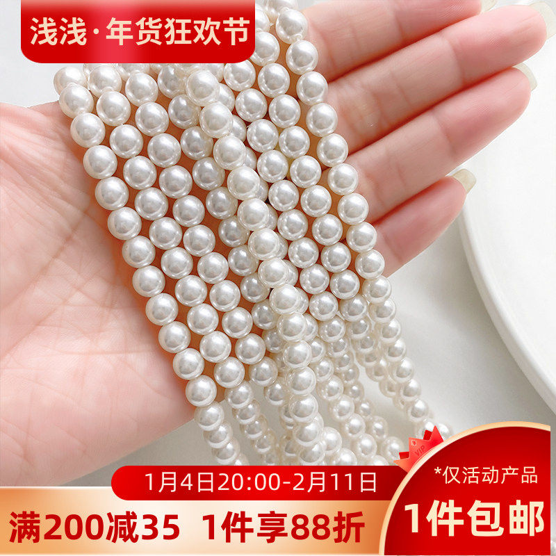 天然贝珠散珠有孔4mm珍珠贝壳珠带孔珠子串珠手链diy材料配件批发