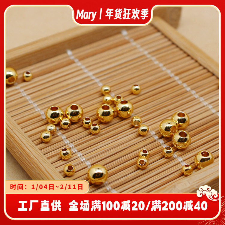 100颗价14K包金保色金珠散珠银珠圆珠子隔珠diy串珠手链项链配件