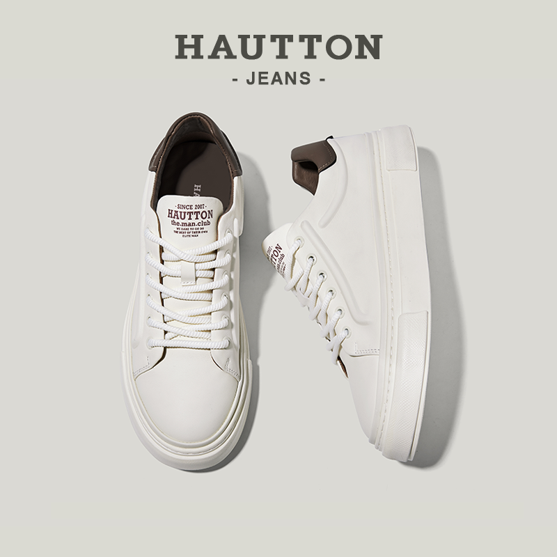 HauttonJeans小白鞋男鞋2025秋季新款真皮白色板鞋男士百搭休闲鞋