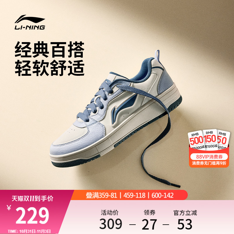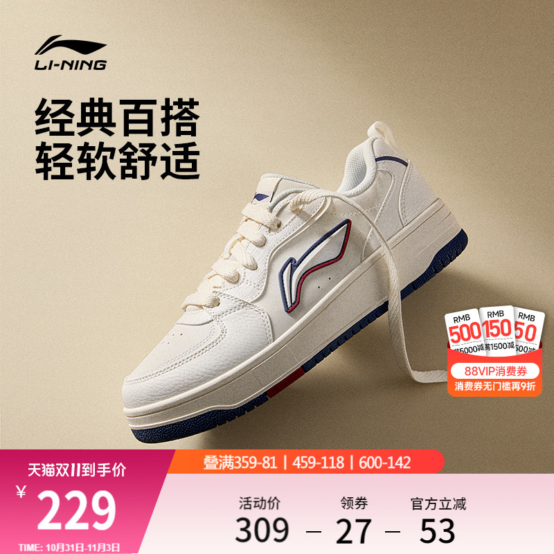 李宁月白2 | 板鞋男款秋冬复古百搭黑色休闲鞋情侣白色运动鞋女鞋