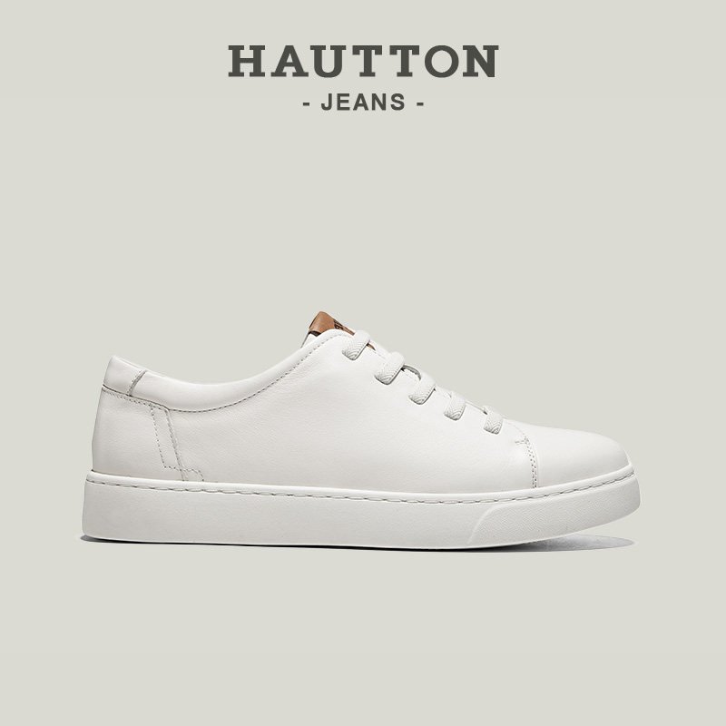 【明星同款】HauttonJeans真皮白色板鞋男款简约小白鞋百搭休闲鞋