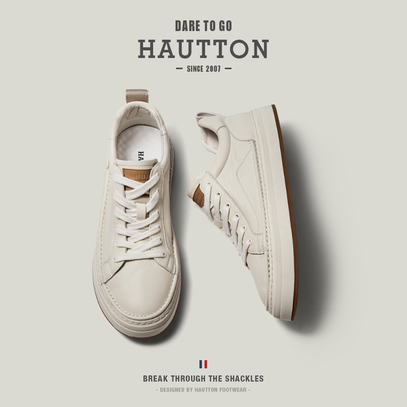 【贾乃亮同款】HauttonJeans厚底小白鞋男款真皮白色板鞋男休闲鞋