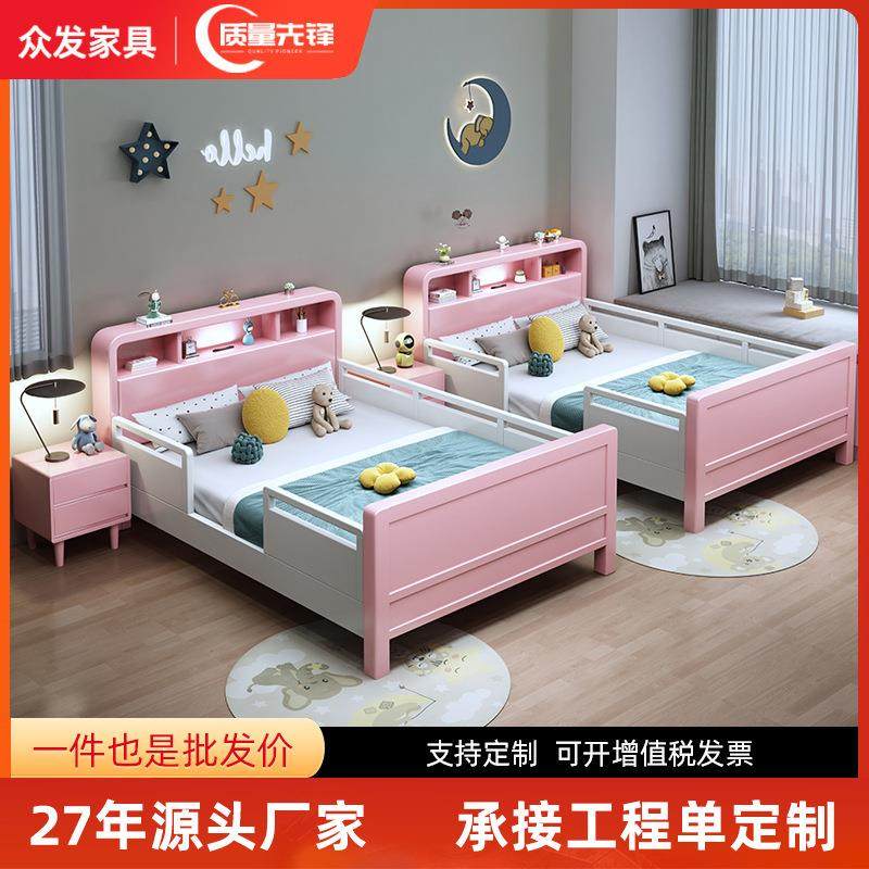 实木儿童床带护栏小床简约现代男孩女孩公主床单人床加宽拼接大床
