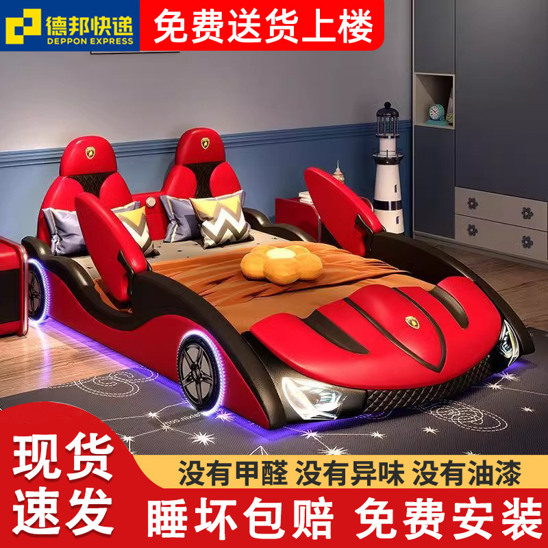儿童床男孩实木汽车床带护栏1.5儿童床1.2到16岁创意双人房间皮床