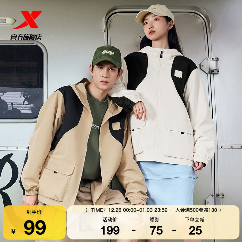 特步外套男女同款2025秋冬新款情侣薄户外运动防泼水双层夹克风衣