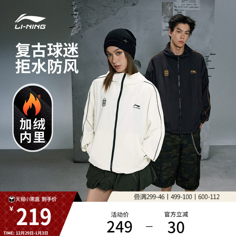 李宁外套男秋冬新款情侣梭织风衣加绒休闲潮流学院上衣运动夹克女
