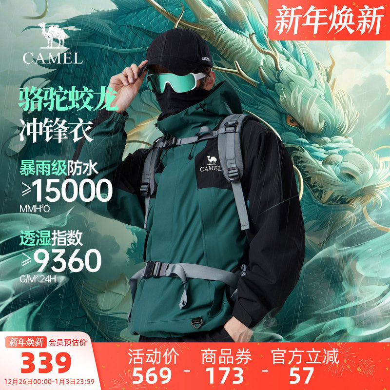 骆驼山海夹克情侣款外套幻影黑硬壳登山服2025秋冬款户外防水风衣