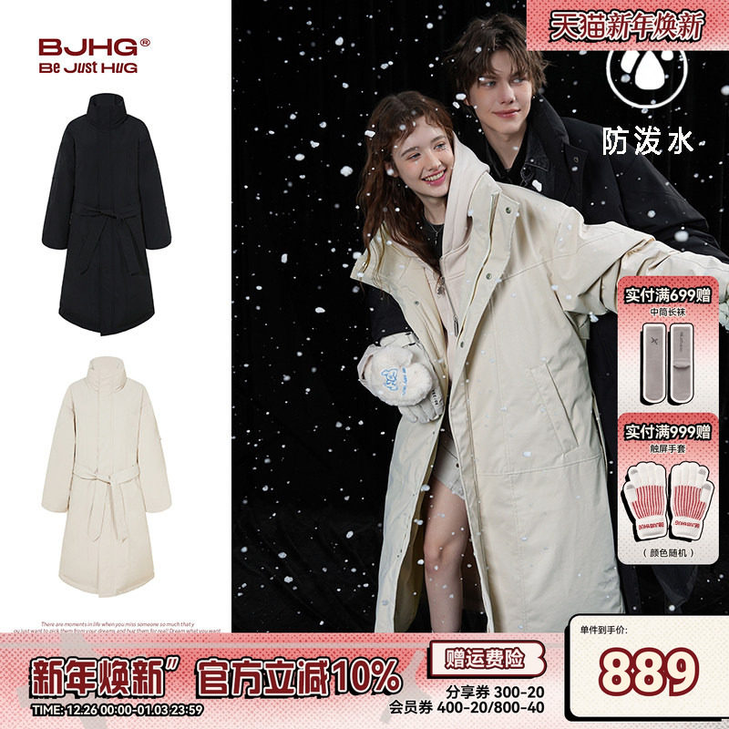 BJHG不计后果长款羽绒服男女款冬季新款加厚情侣黑色风衣大衣外套