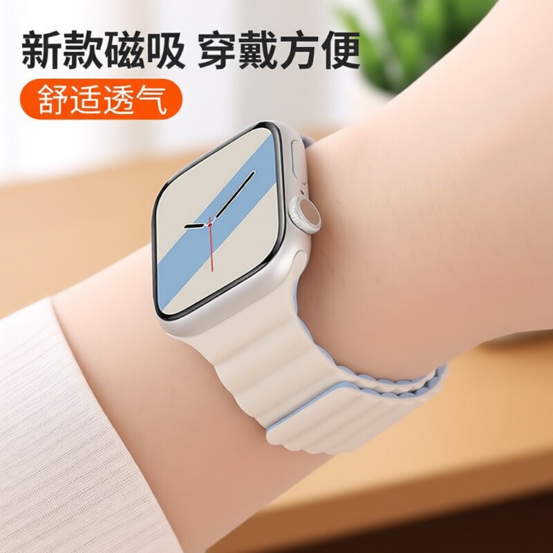 适用苹果S9手表iwatch8表带applewatch10/10磁吸式S8硅胶S7 Ultra男SE新款运动创意女S6保护壳iphonewatch