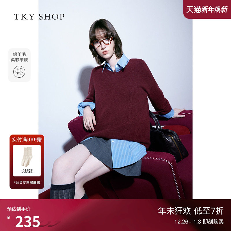TKY SHOP圆领羊毛衫女2025冬新款安可拉红毛衣慵懒高级感保暖上衣
