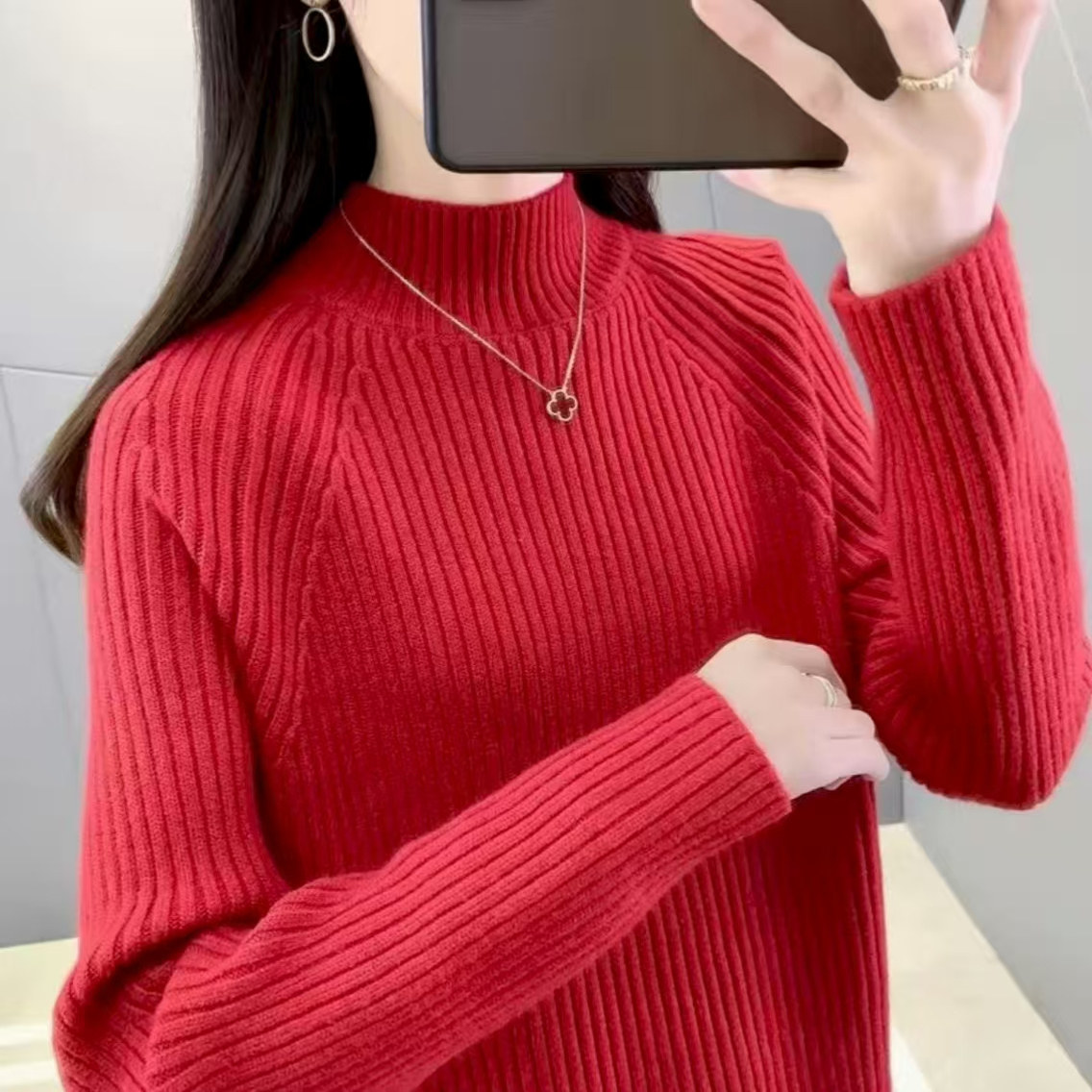 【中国红毛衣】2025初秋新款女士内搭打底衫纯色显瘦气质减龄上衣