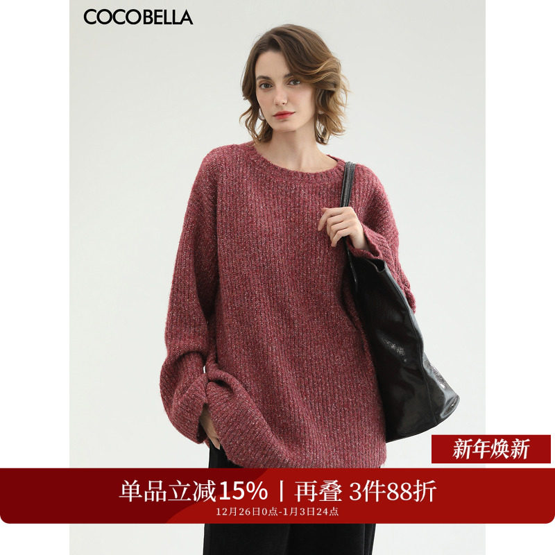 COCOBELLA粗针混纺花纱杂色毛衣2025秋冬新款高级感红毛衣MZ3271