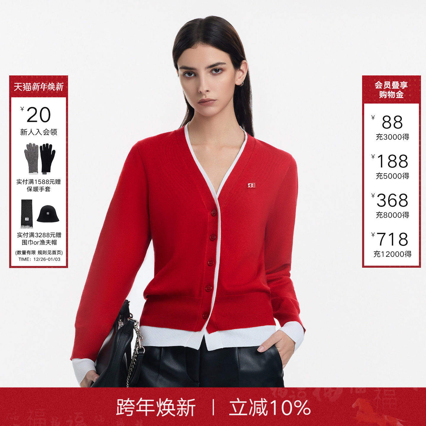 【羊绒】bash2025新款冬季复古圣诞车厘子红毛衣针织开衫1E25CHIB