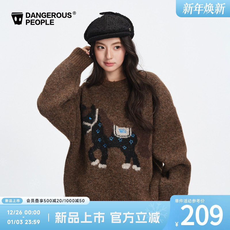 Dangerouspeople薛之谦dsp新款小马针织衫冬宽松慵懒情侣红色毛衣