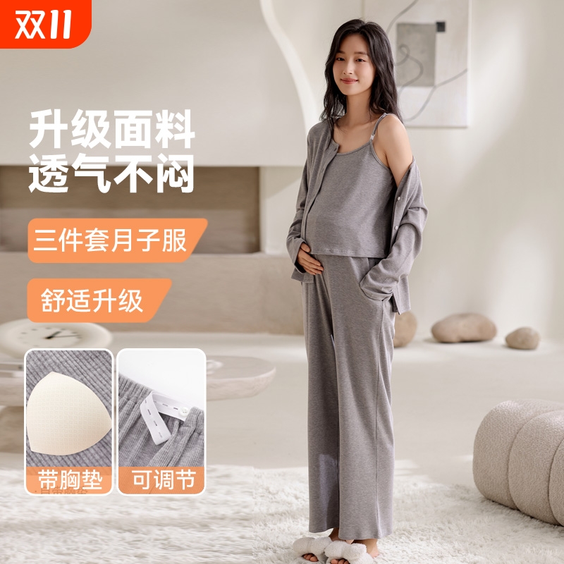 秋季月子服带胸垫11月份12产妇产后哺乳喂奶孕妇睡衣不勒肚家居服