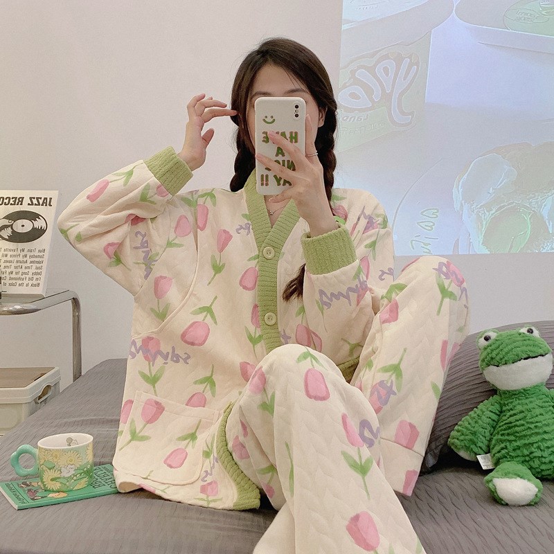 春秋季月子服孕妇空气棉夹层睡衣产妇秋冬开衫哺乳喂奶家居服套装