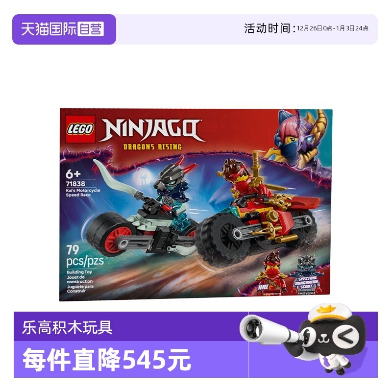 LEGO乐高幻影忍者系列71838凯的摩托车极速追击儿童拼装积木玩具