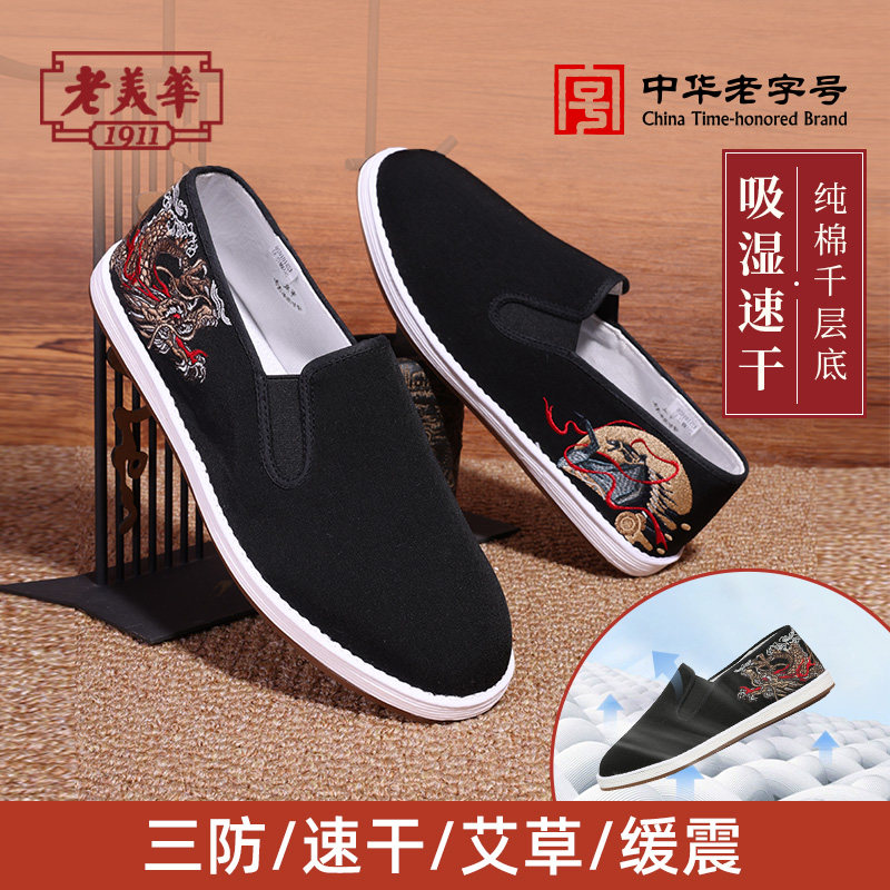 老美华2026新款龙马精神刺绣布鞋三防竹纤维艾草缓震千层底布鞋
