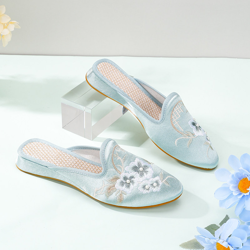 包头拖鞋女刺绣布鞋春夏季新款新中式国风绣花鞋舒适半拖旗袍鞋拖