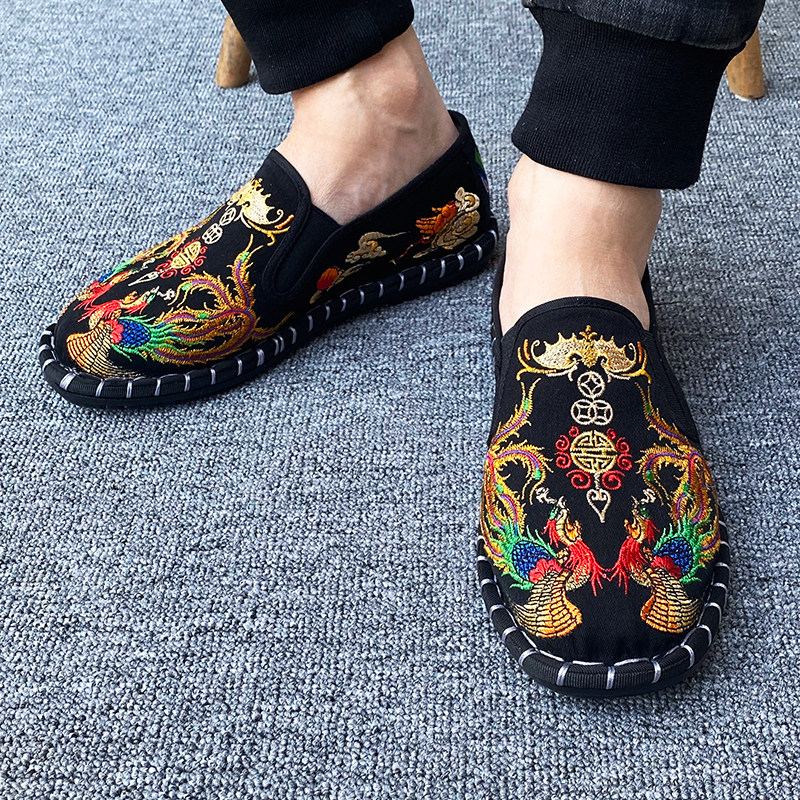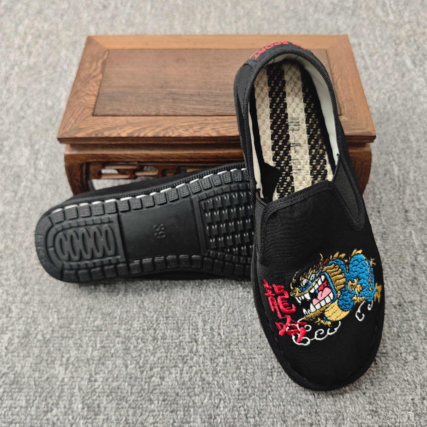 老北京一脚蹬布鞋男士耐磨舒适平底鞋百搭轻便防臭刺绣布鞋中国风