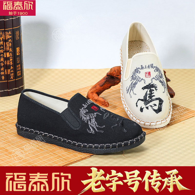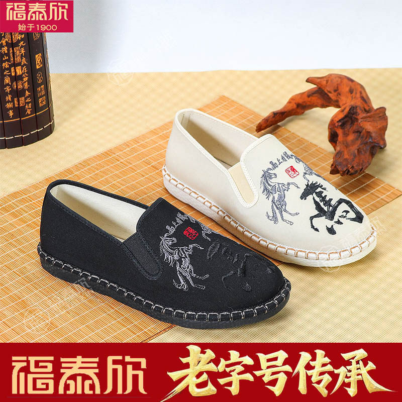 福泰欣老北京布鞋男春秋新款刺绣布鞋男民族风休闲鞋透气防滑软底