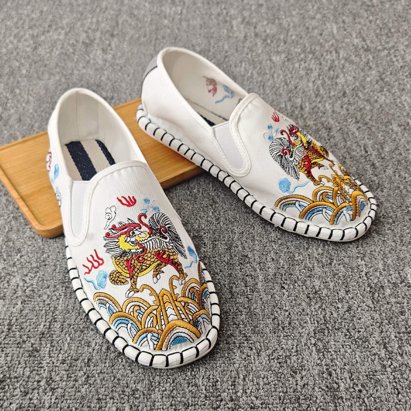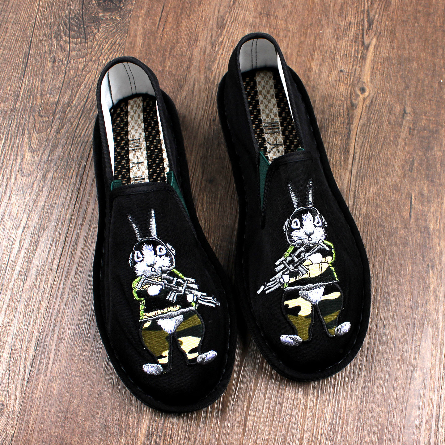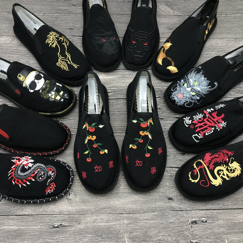 一脚蹬布鞋布仆男潮老北京刺绣布鞋帆布鞋绣艺社会精神小伙豆豆鞋
