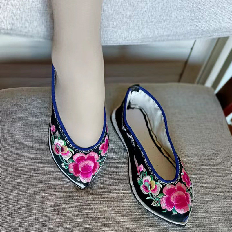 汉服古风 女布鞋坡跟 中国风老北京布鞋绣花鞋软底舞蹈鞋浅口春夏