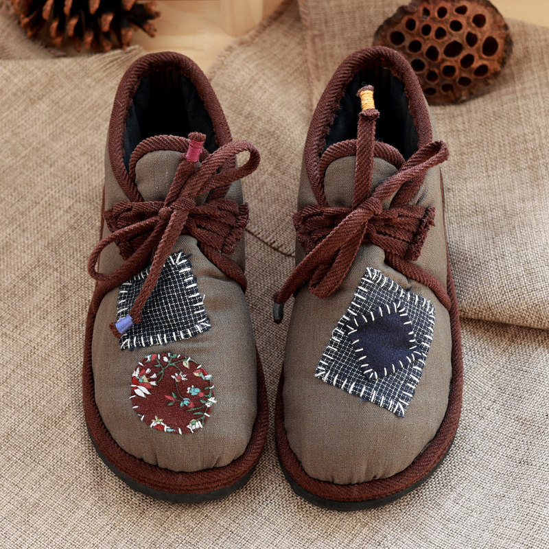 平底加绒棉鞋民族风刺绣布鞋女加绒保暖老北京圆头软底舒适懒人鞋
