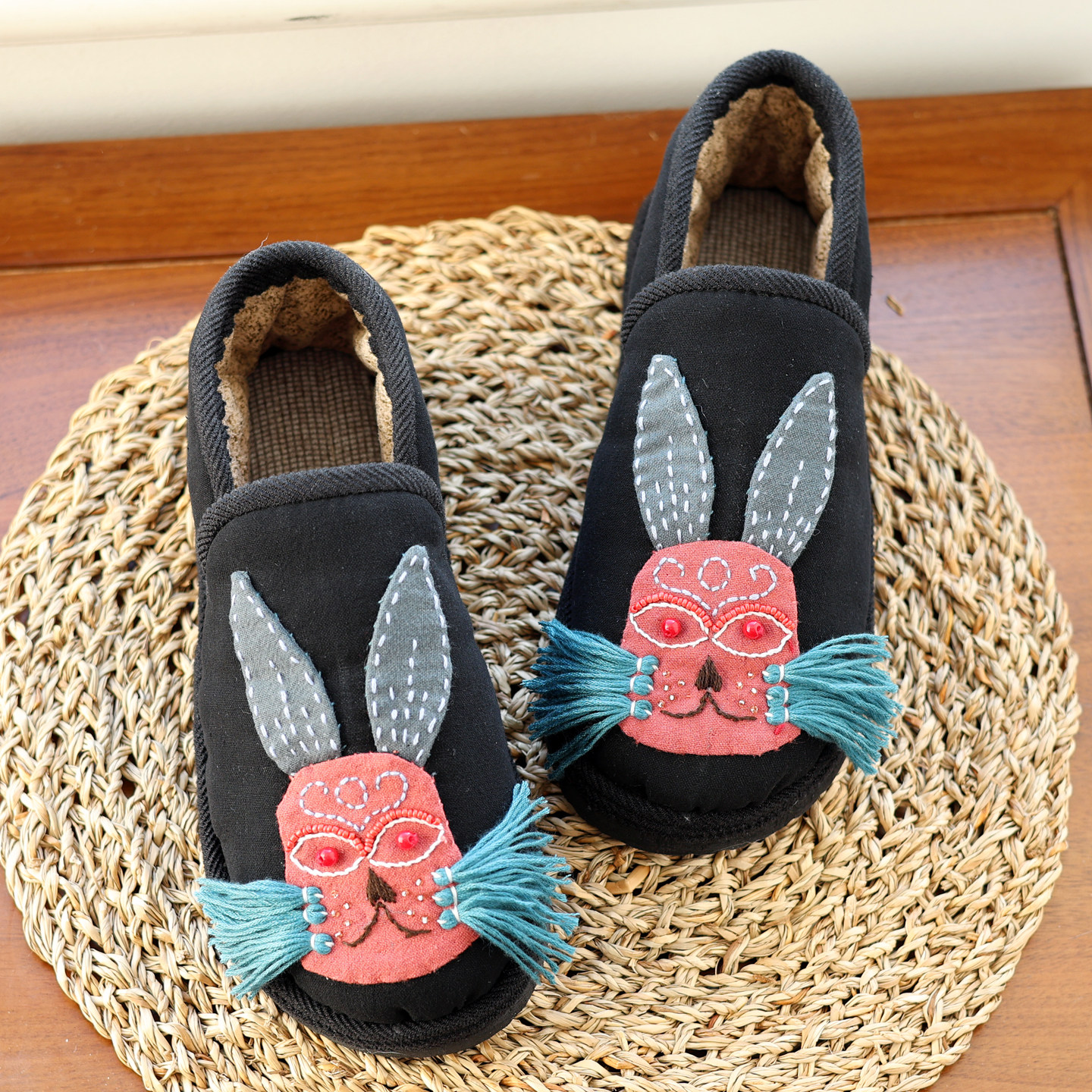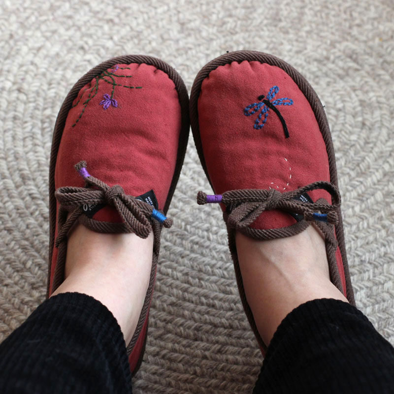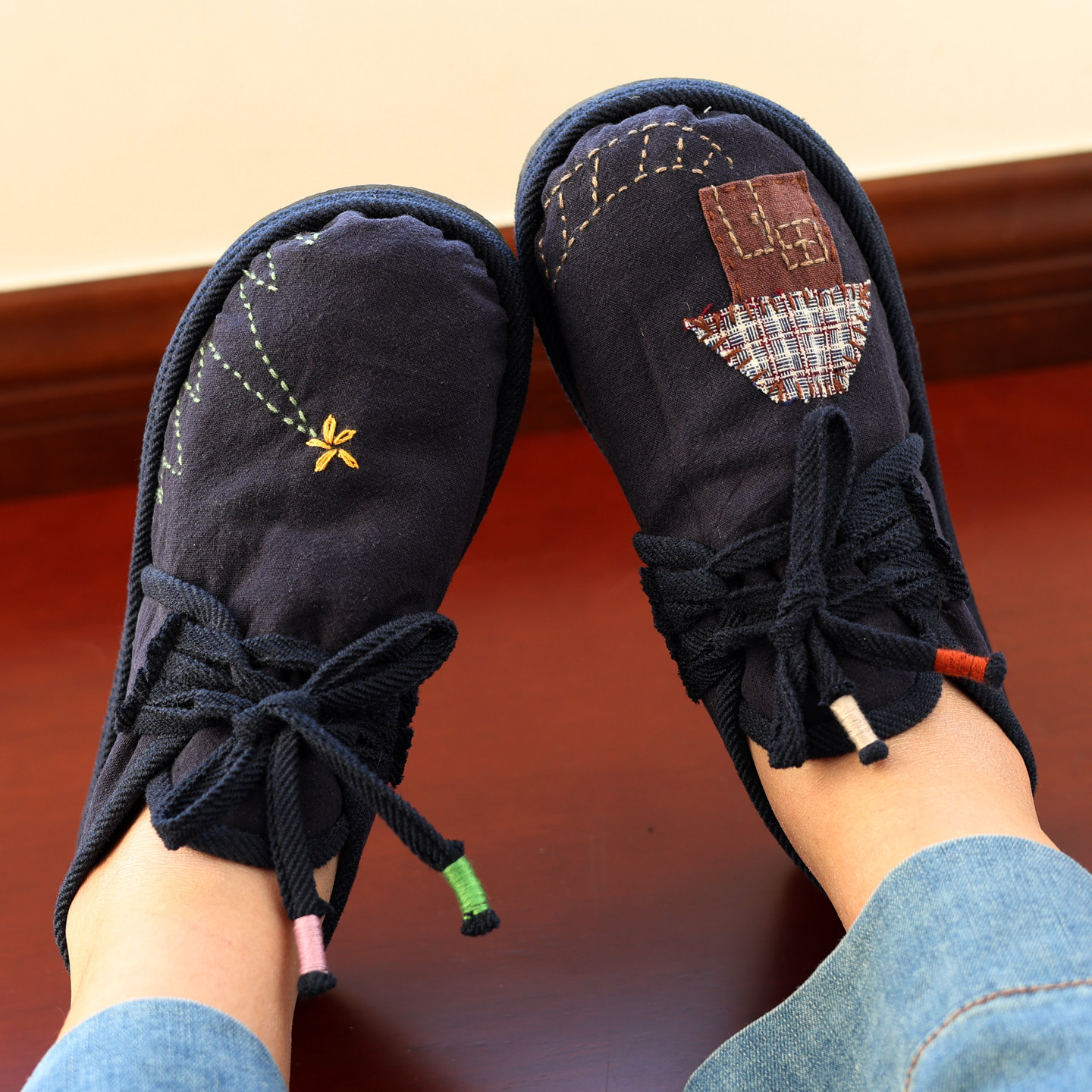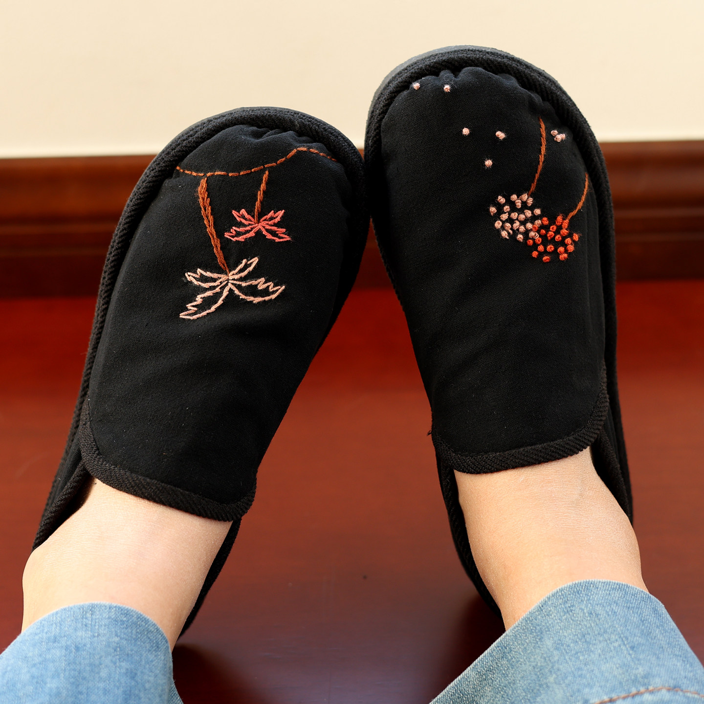 手工刺绣布鞋女冬加绒加厚保暖布鞋一脚蹬女士布鞋女款舒适不累脚