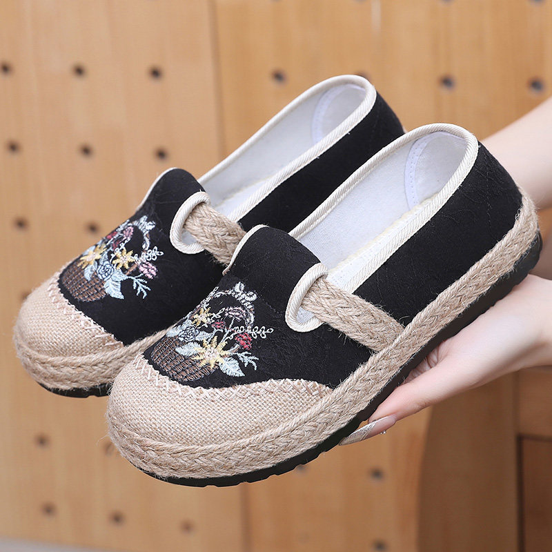 老北京布鞋女亚麻民族风绣花鞋厚底软底妈妈鞋国风刺绣布鞋一脚蹬