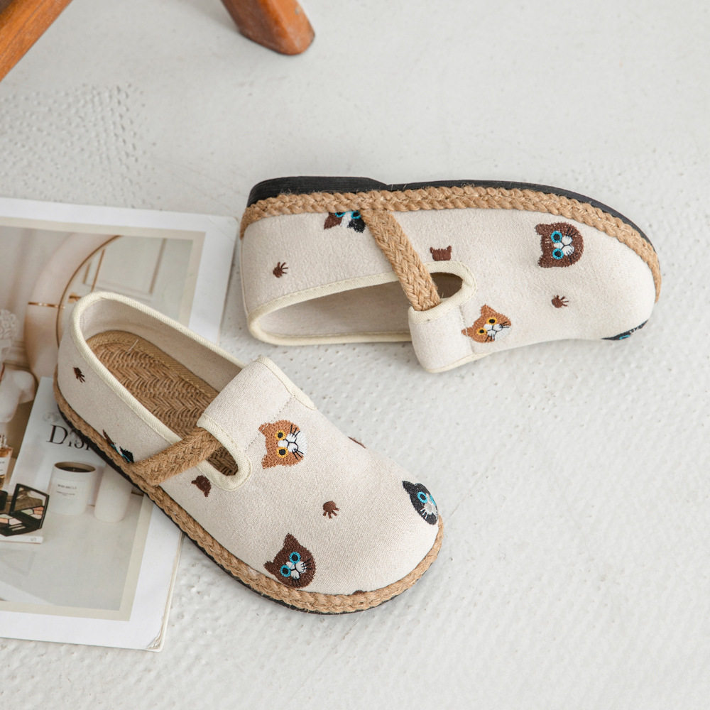 {猫咪刺绣}新款2025休闲透气女单鞋卡通刺绣布鞋百搭休闲女鞋夏