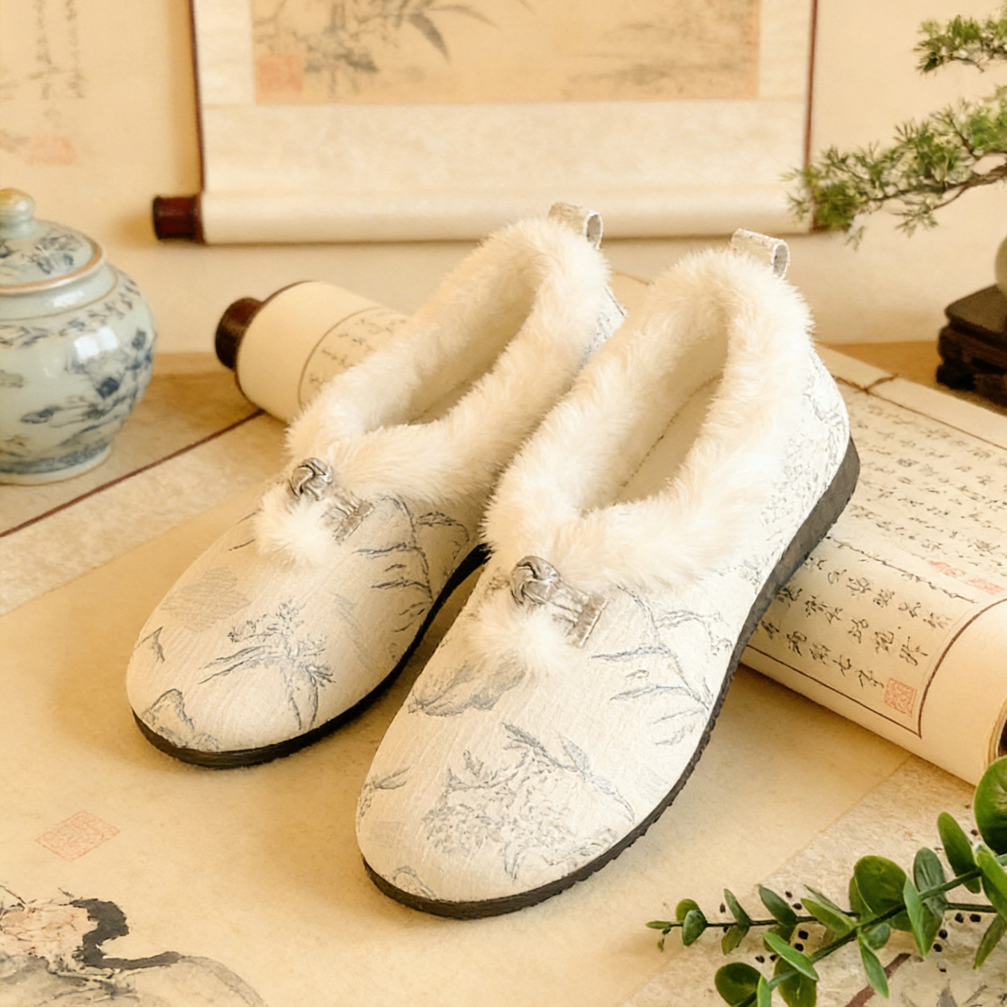 手工刺绣布鞋女冬加绒加厚保暖布鞋女款一脚蹬布鞋舒适不累脚新款