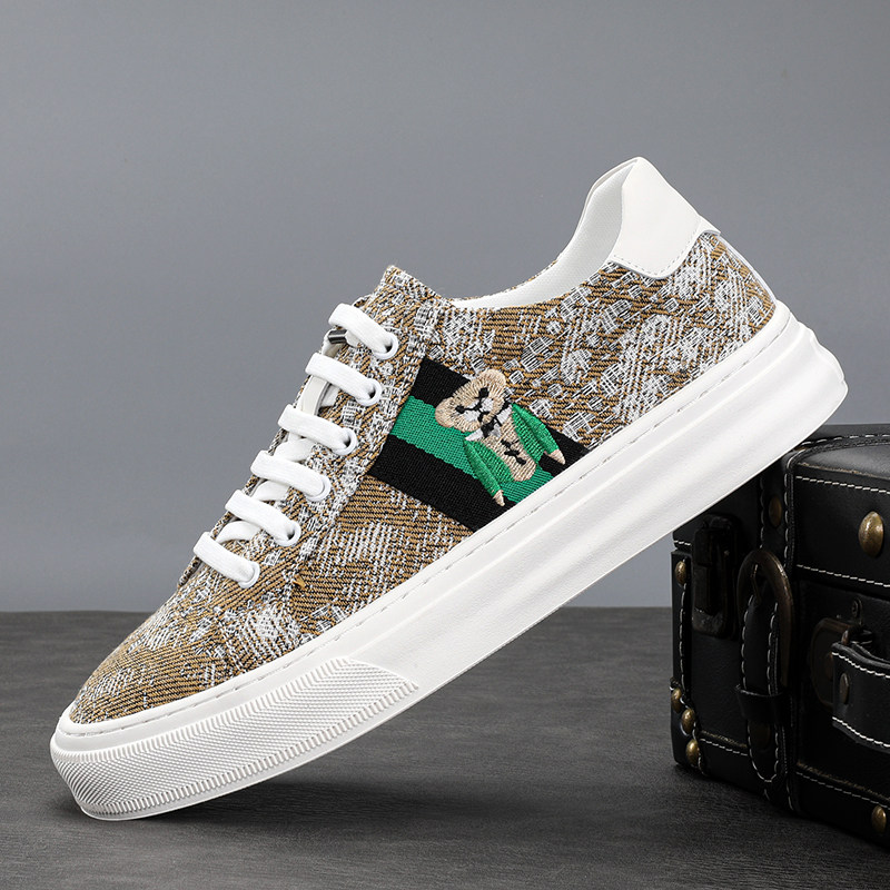 欧洲站男鞋2025夏款小熊刺绣布鞋透气超轻舒适板鞋青年印花休闲鞋
