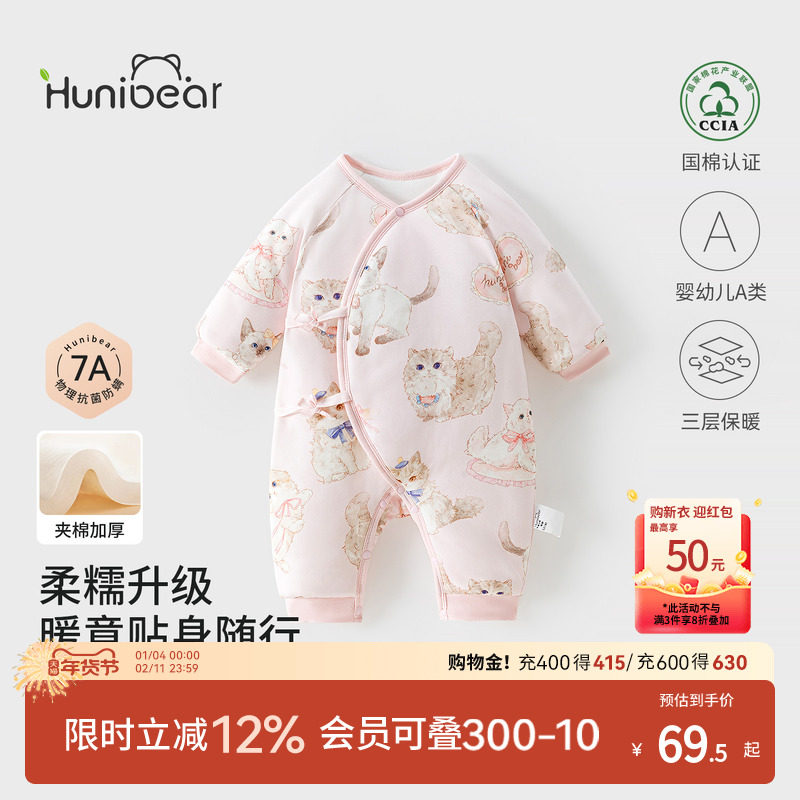 童泰新生婴儿儿衣服秋冬连体衣夹棉宝宝冬装保暖春秋初生哈衣冬季