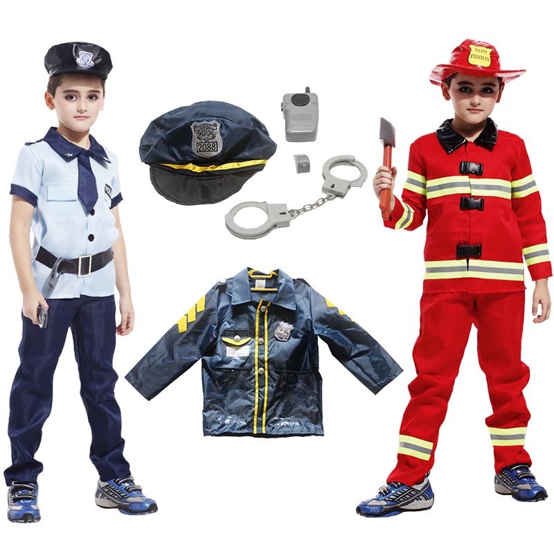 万圣节儿童服装消防员汽车警车警察服cos创意表演服幼儿园演出服