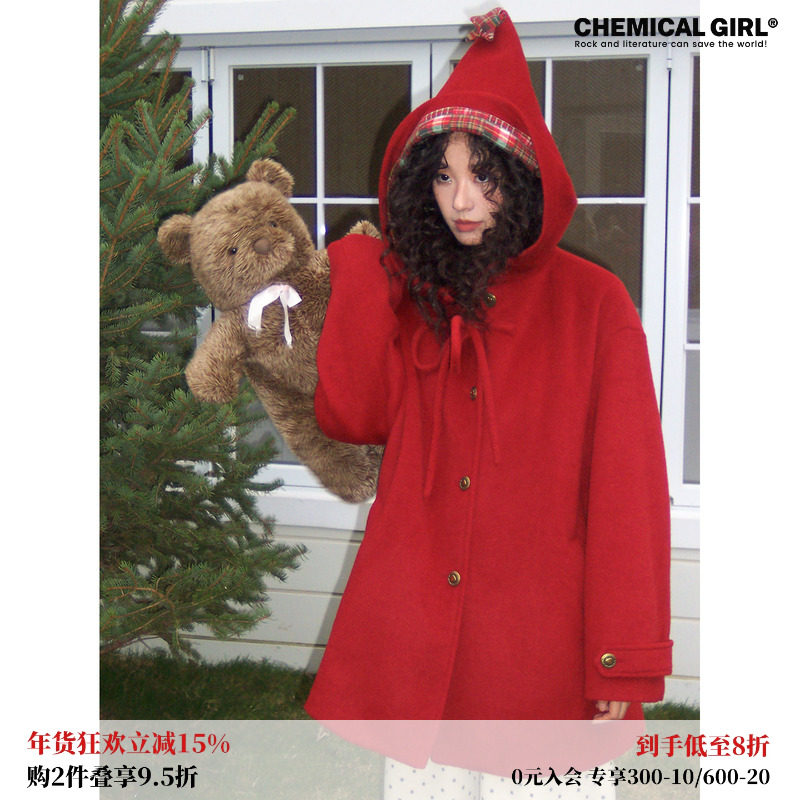 XWI欣未新中式国风红色双面呢外套女秋冬季婚宴礼服日常可穿大衣