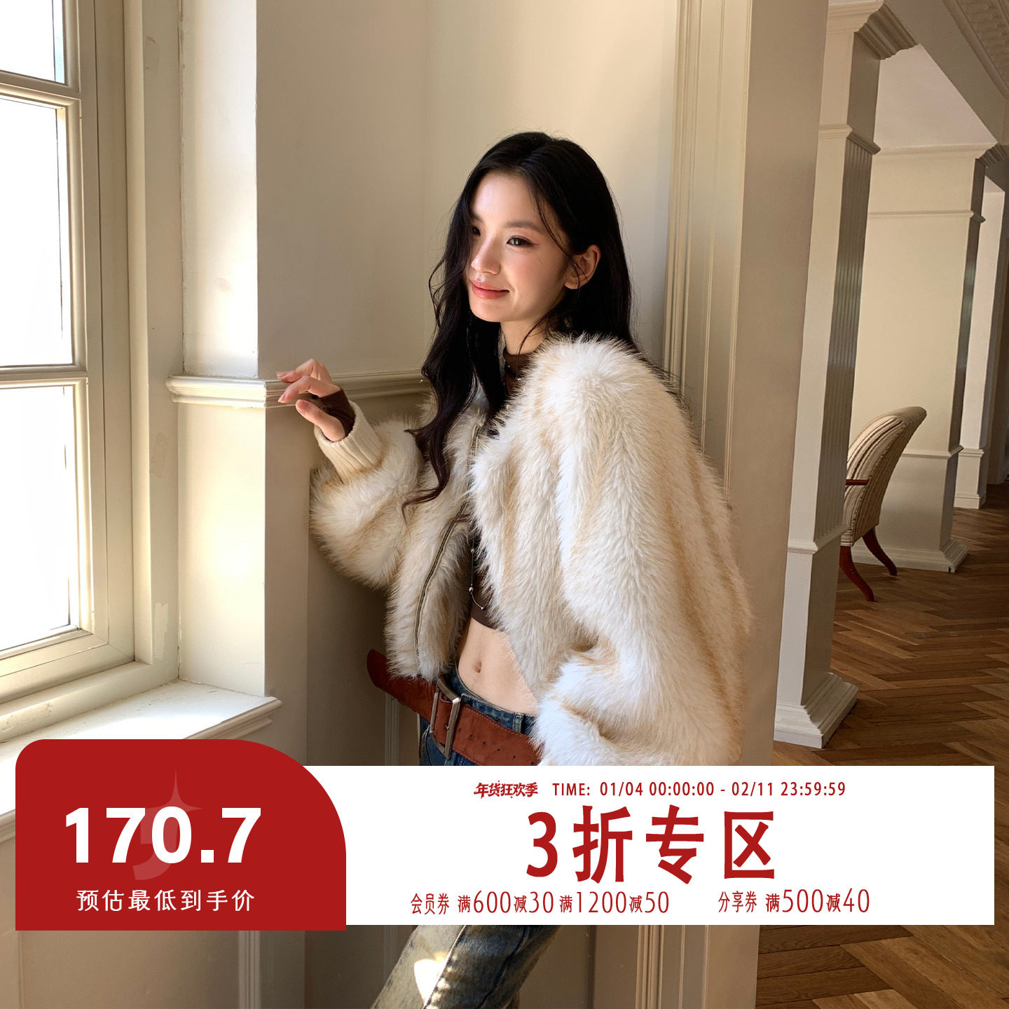 FTT FlyTheTruth『半熟蜜桃』 环保皮草外套女秋冬季保暖毛毛上衣