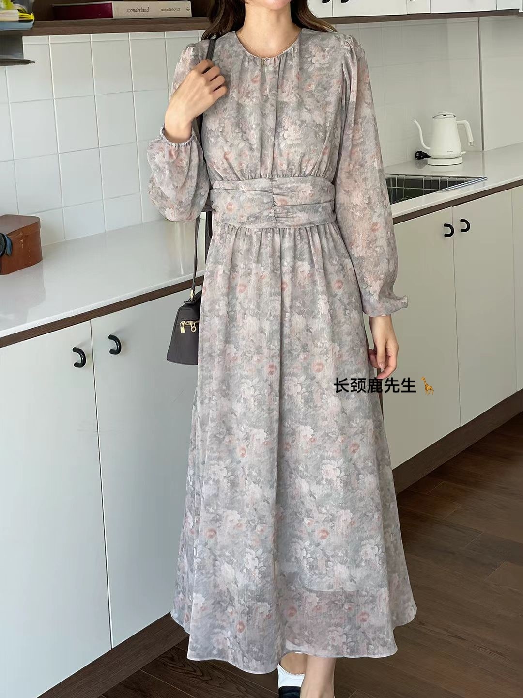 - 碎花连衣裙雪纺长款