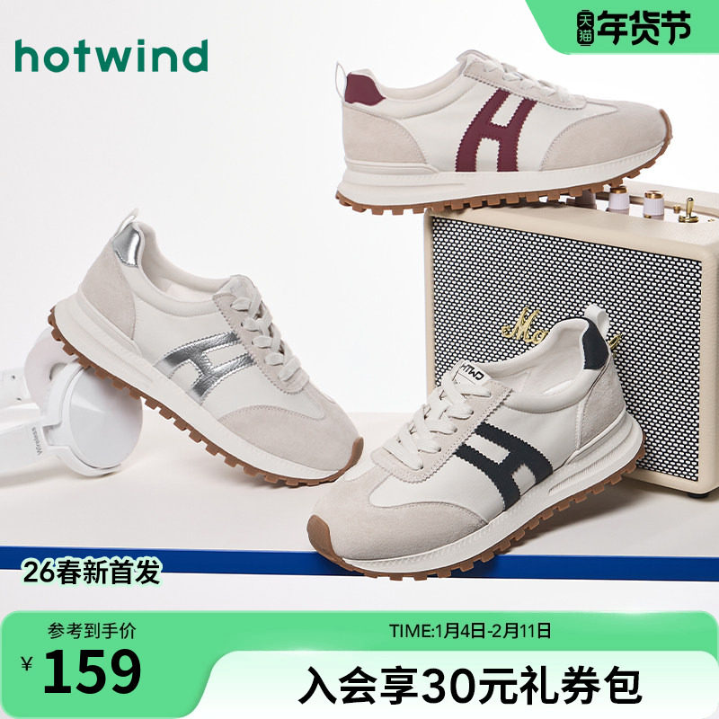 热风厚底阿甘鞋女款2026年春季新款百搭红色德训鞋新年运动休闲鞋