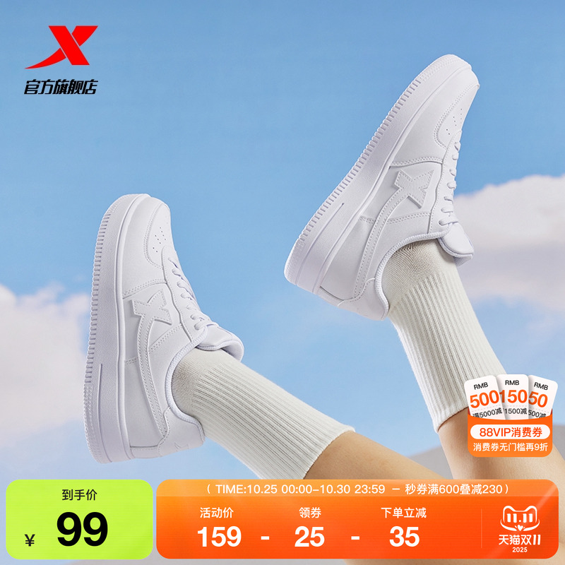 特步小白鞋女鞋秋季情侣休闲鞋子男鞋空军一号厚底百搭运动鞋板鞋