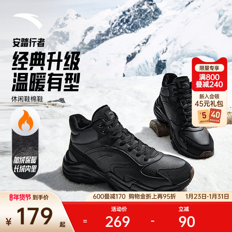 安踏行者丨加绒保暖高帮皮面大棉鞋男女鞋2025冬季加厚运动休闲鞋