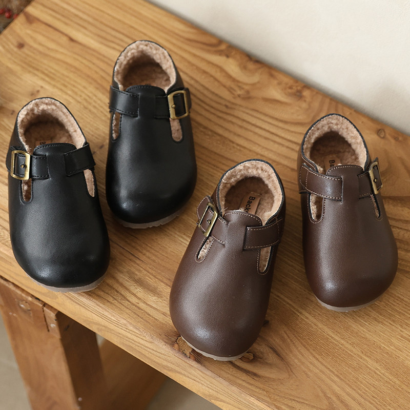 真皮男童勃肯鞋2025秋冬季英伦风宝宝鞋软底女孩单鞋加绒女童棉鞋