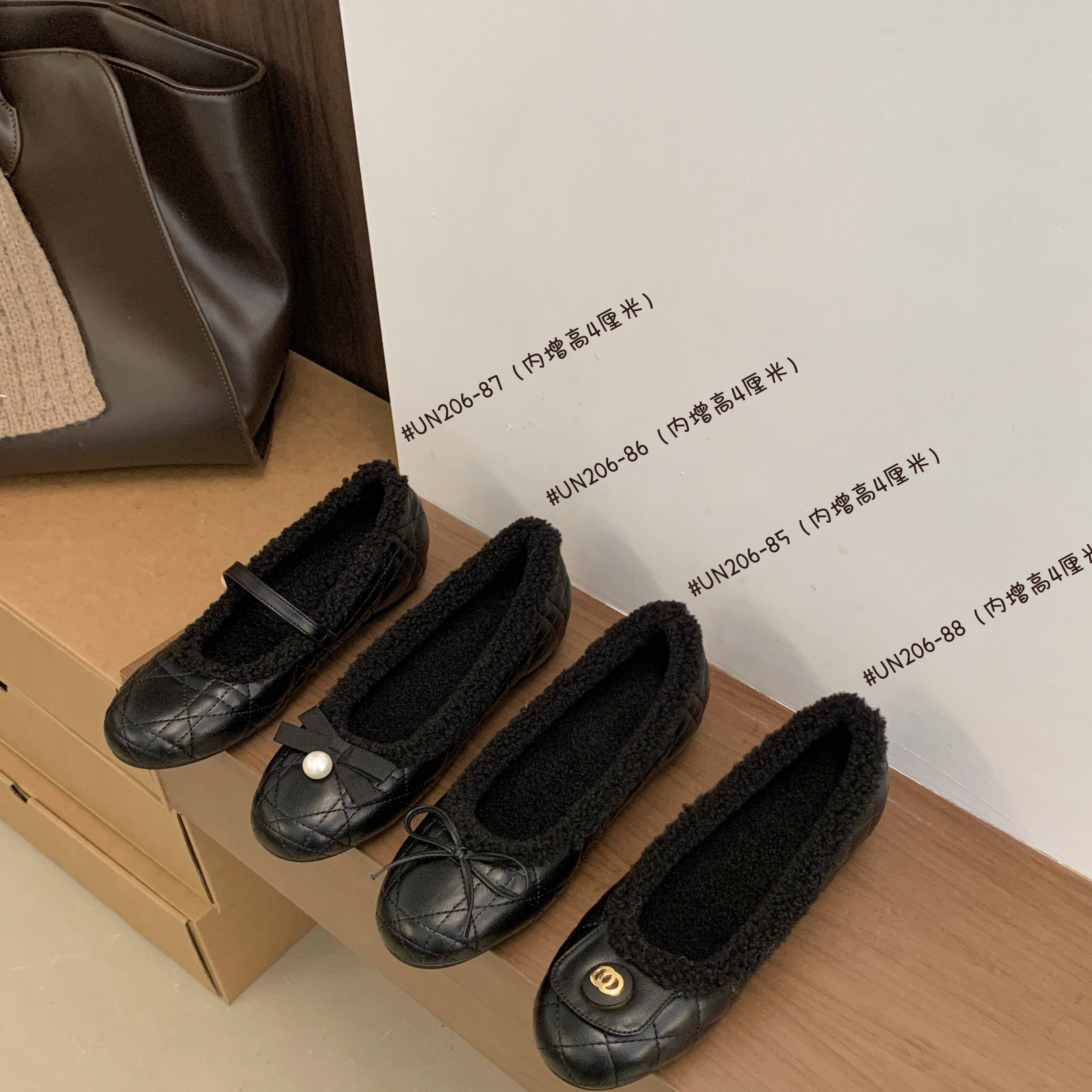 5cm内增高~山茶花加绒玛丽珍鞋女冬季蝴蝶结单鞋保暖雪地毛毛棉鞋