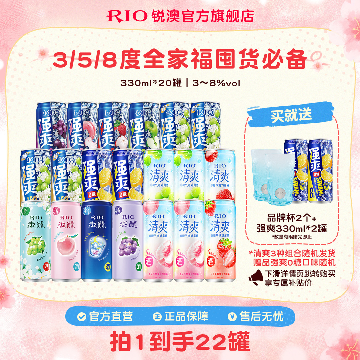 RIO锐澳预调鸡尾酒3度微醺330ml*20罐低度果酒女生酒甜酒整箱囤货