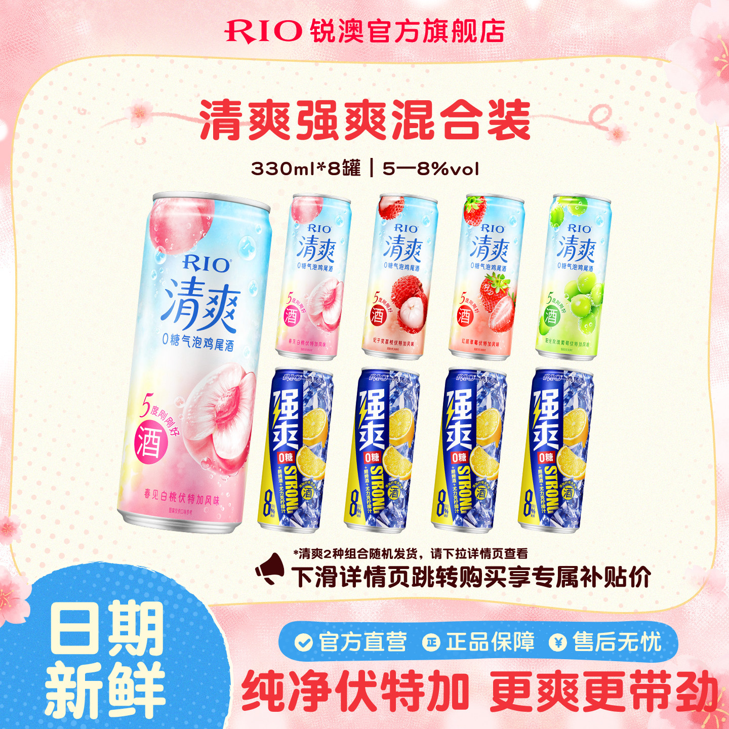 RIO锐澳预调鸡尾酒8度强爽0糖330ml*8罐低度气泡酒果酒伏特加