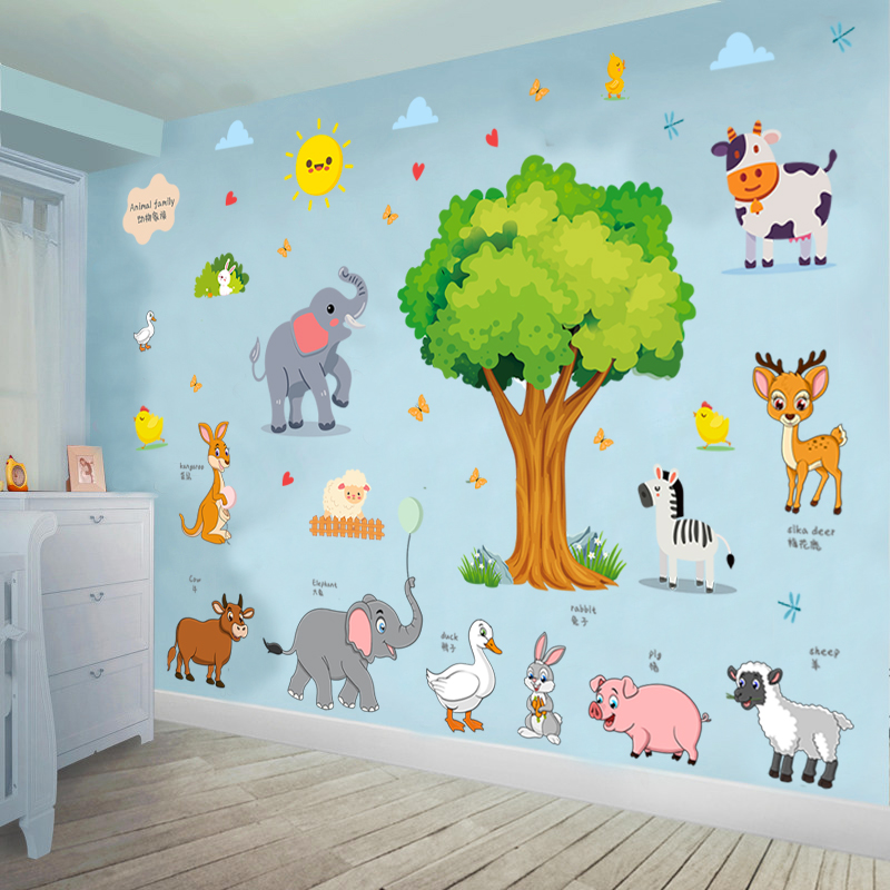 儿童房宝宝卧室贴画卡通可爱动物贴纸墙画墙纸幼儿园装饰墙贴防水