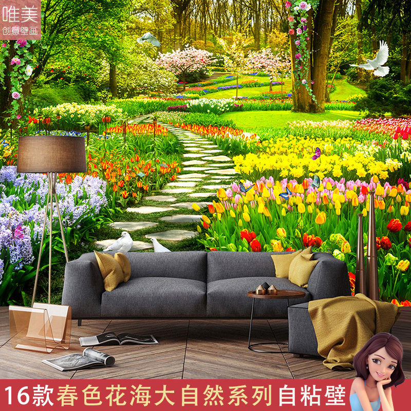 壁画贴纸自粘墙贴加厚墙纸卧室贴画客厅装饰电视背景墙花海风景画