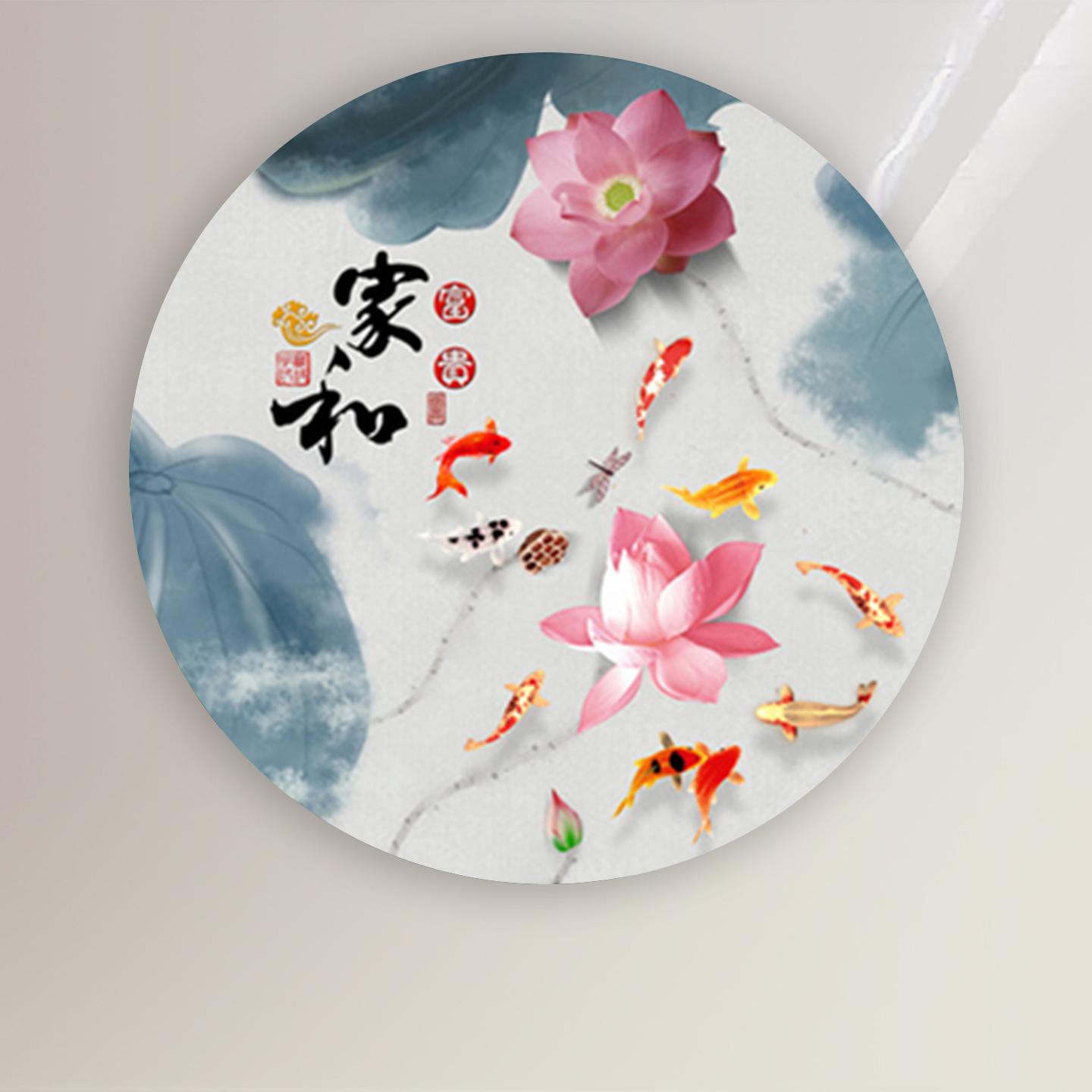 荷花锦鲤贴画客厅卧室贴画现代简约墙画富贵吉祥免打孔圆形自粘画