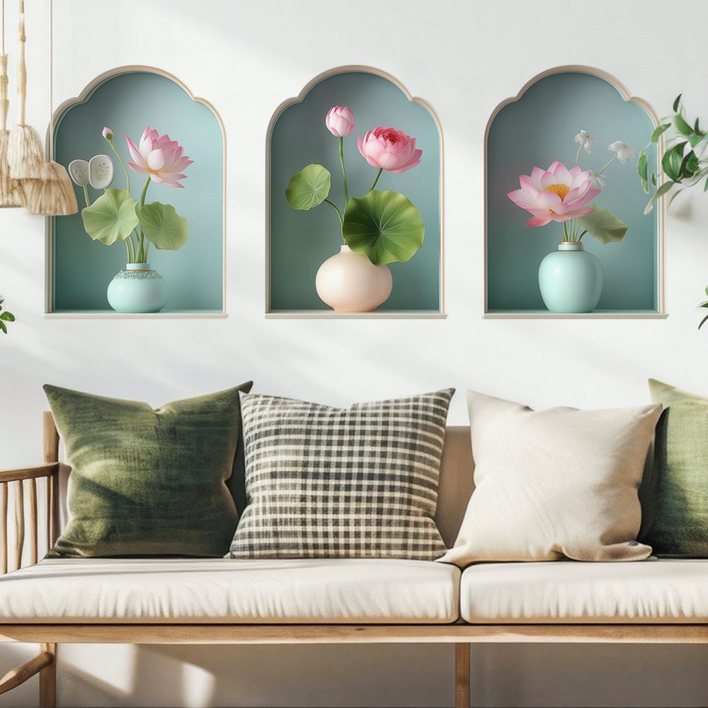 淡雅荷花墙贴出租屋客厅沙发背景墙装饰贴纸布置改造餐厅卧室贴画